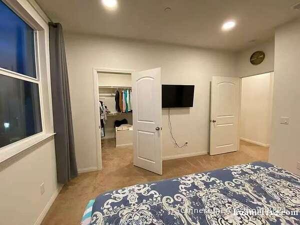 Anaheim沃尔玛旁有一单间雅房优恵出租,门禁社区、安全安静,屋内人员极少,房间有走入式衣